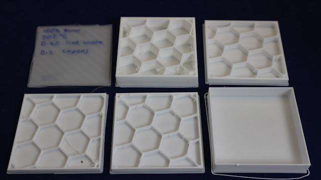 degrees C), increased layer height (0.25mm) and lower extruder