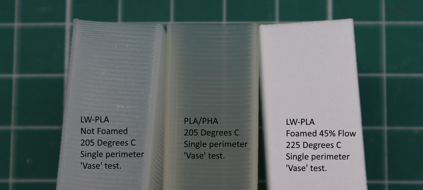 PLA/PHA and the LW-PLA foamed at 45% flow.